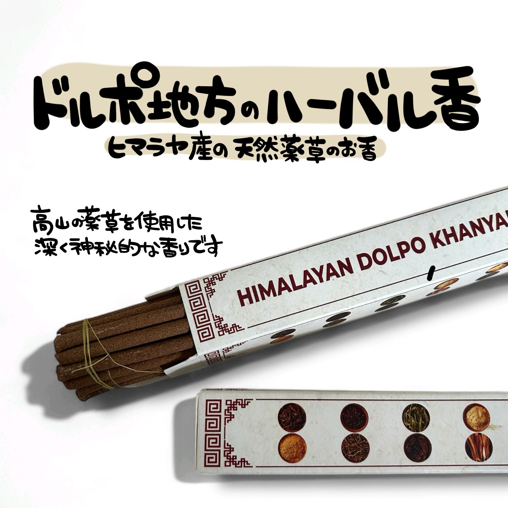 ネパールの秘境ドルポ地方で採取された、標高の高い清らかな山々に育つ希少な薬草や天然樹脂を厳選し贅沢に使用した100%ナチュラルなハーバルインセンス。
